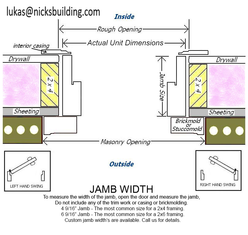 It is Vital to get the Rough Opening measurement correct.You need approximately 1" of play and shim room when installing a prehung door. When measuring for a replacement door get the Masonry Opening Measurement too if there is existing Brick, Stone or Stucco and even wood or vinyl siding you have surrounding the entry door as it can spoil an easy installation for proper fitment.