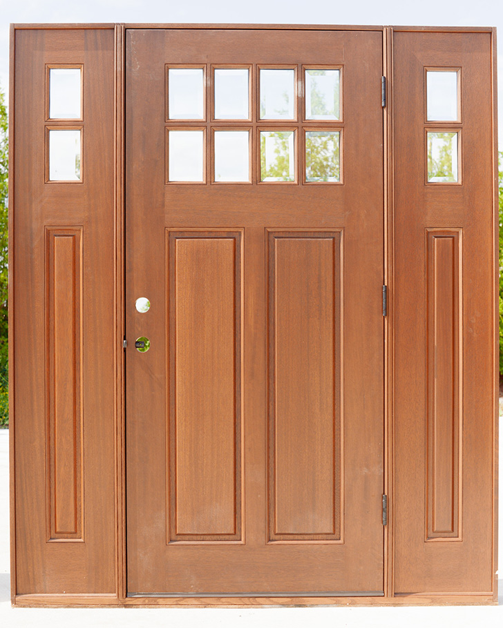 Mahogany Craftsman Door with Clear Beveled Glass and Sidelites