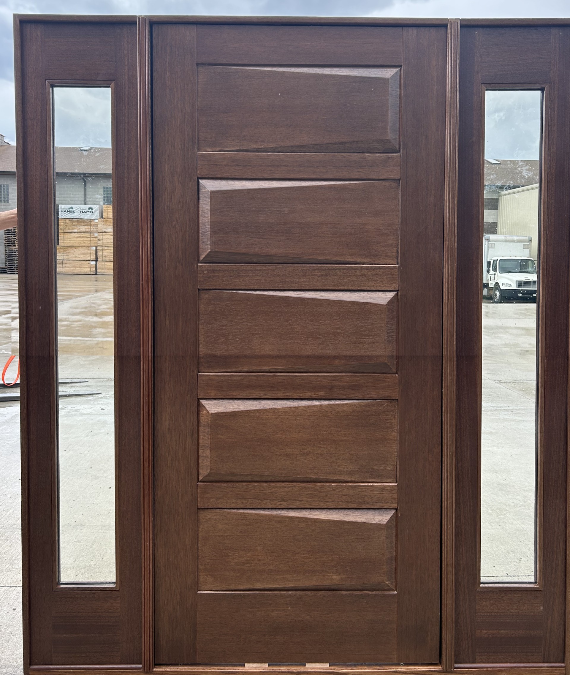 Mahogany Matrix 5 panel Door with 2 Clear Sidelights