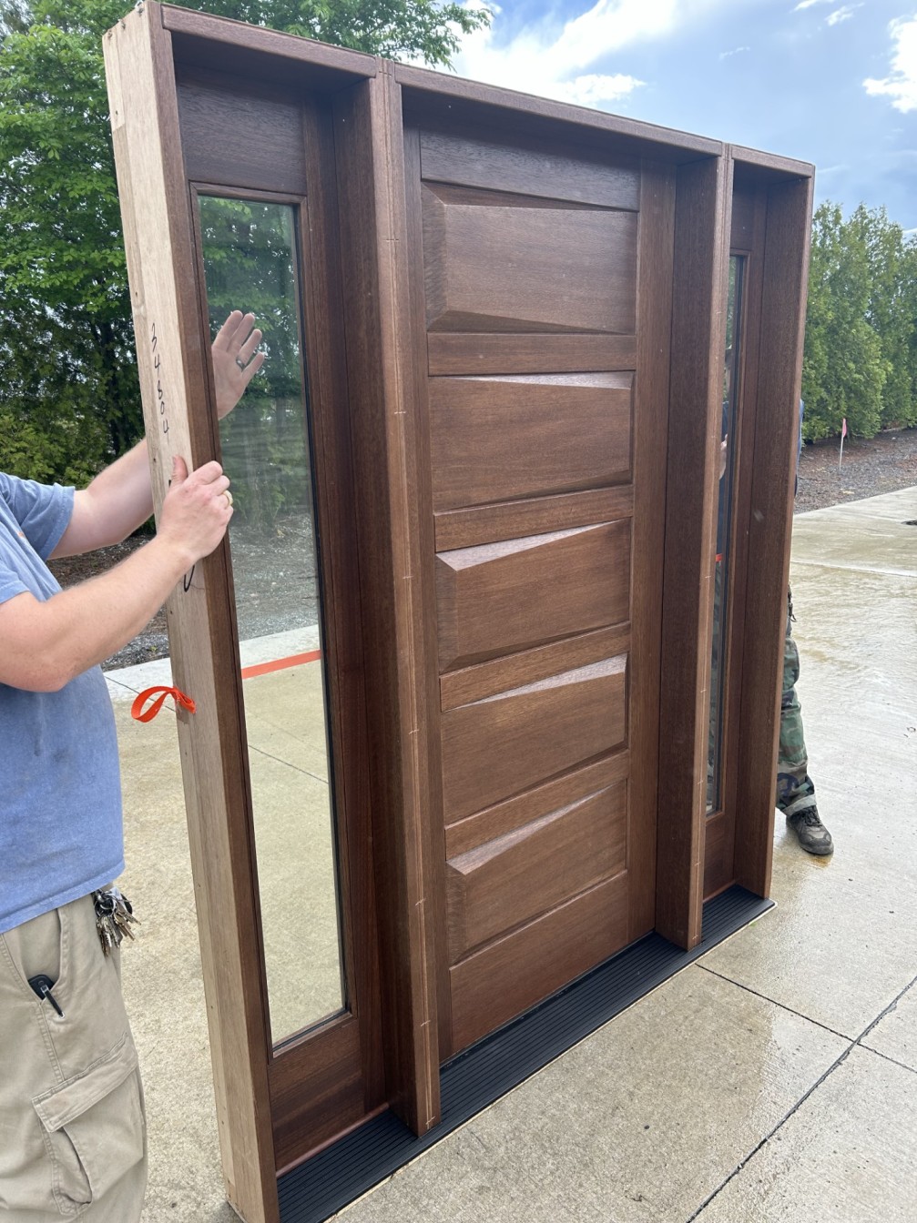 Solid Wood - Matrix Mahogany Door, (Slab Size) 3' 0" x 6' 8", With Sidelite Quantity - 2, With Sidelite Glass - C1-Sidelights Clear Glass, Comes completely pre hung with compression weather stripping, door sweep, bronze aluminum threshold, matching species jambs and Brickmold and Casing.
