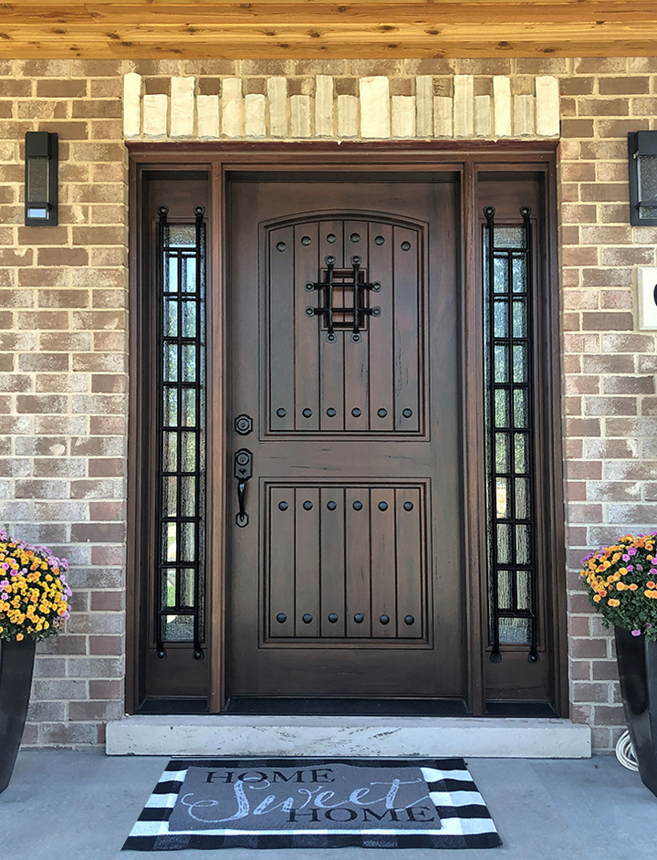 ![]() CL-SW70 3' 0" X 8' 0" Knotty Alder Door SW-51 Sidelites with Wrought Iron Grills MB Only $3950 Un-Finished |