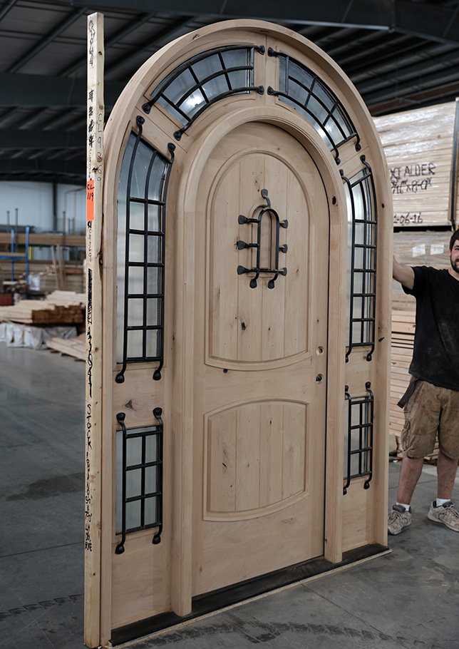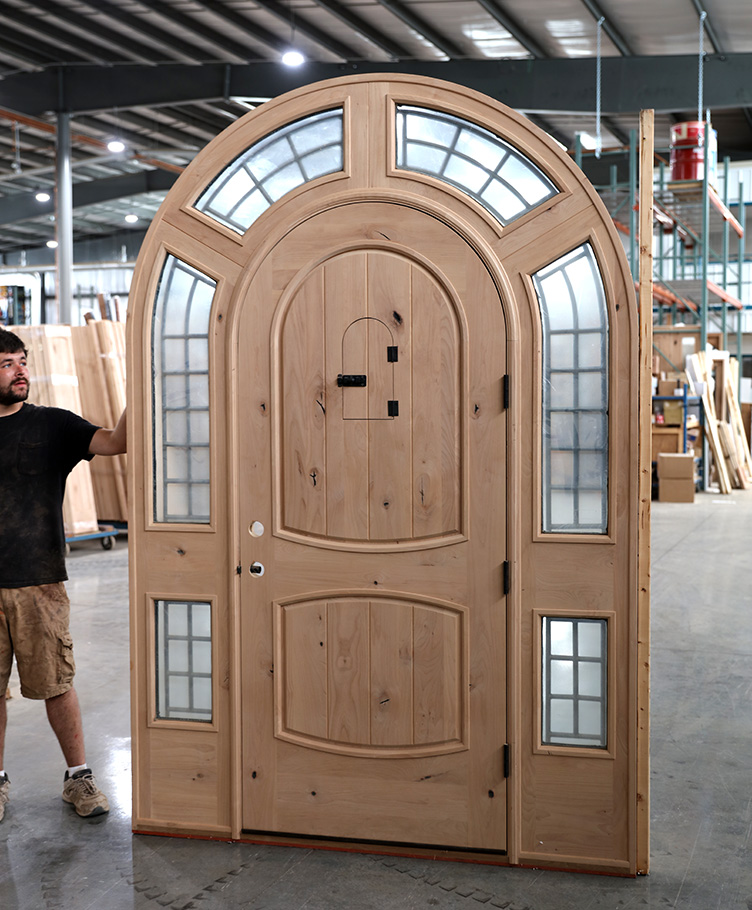 Knotty Alder Arch Top Exterior Wood Door with Surround Transom