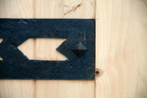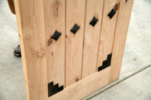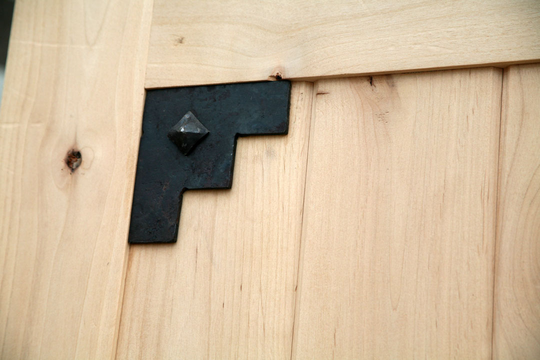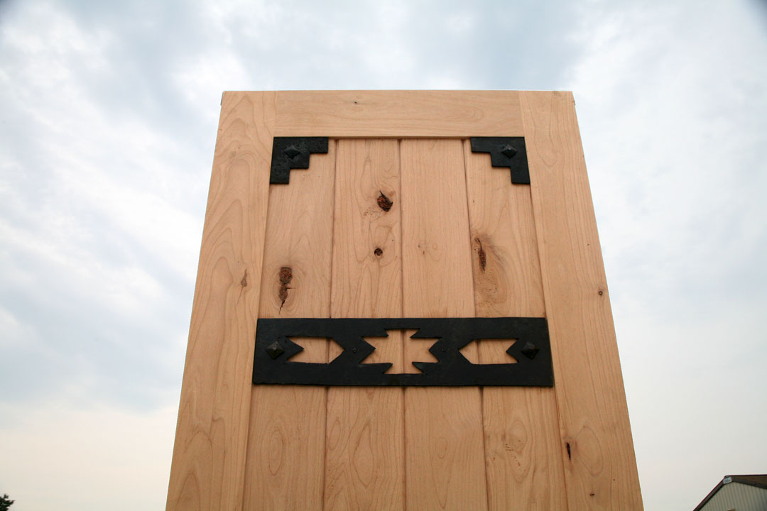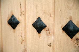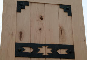Rustic Exterior Doors is 30" wide. A very hard to find rustic door size, as it is not an industry standard for an exterior entry door. This size door best use can be for a wine cellar, sauna or back door. We only have 1 of these rustic doors in stock and will pre-hung to your door swing and bore it for a standard door knob free of charge. The thick rustic wrought iron accents and distressed pyramid clavos and v groove panels, on both the inside and outside, gives this rustic wood door a bold, solid look.